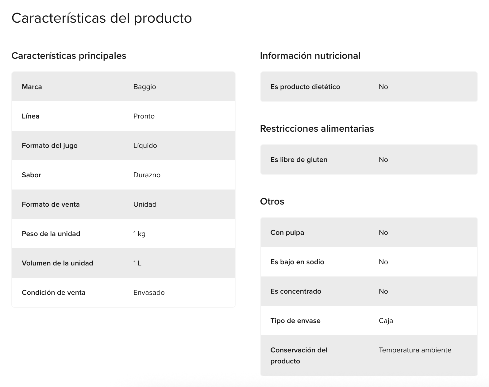 Jugo Baggio Pronto Durazno, 1 L