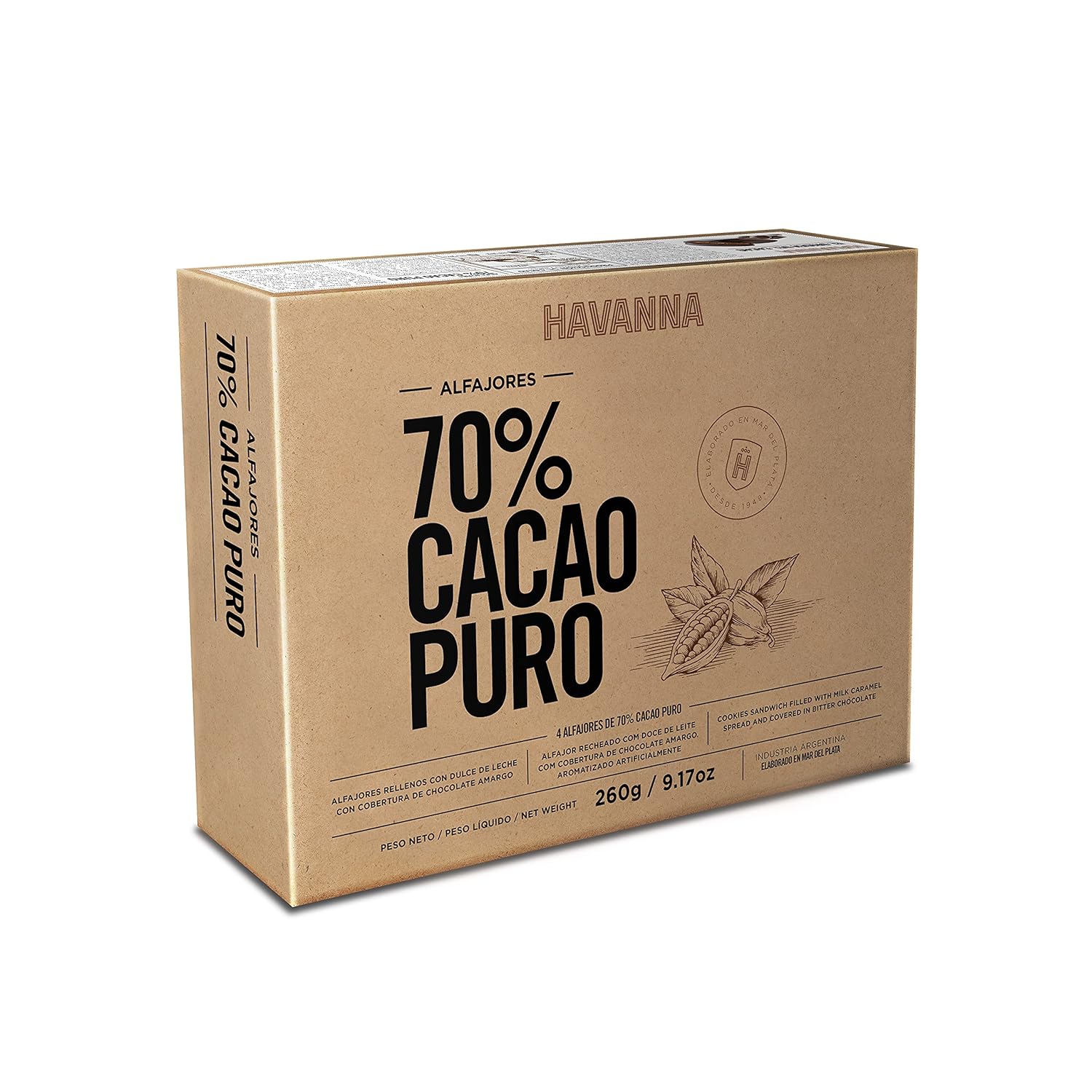 El Havanna Alfajor 70% Chocolate Negro Cacao con Dulce de Leche (Caja de 9 – 585 g / 20.6 oz) es una propuesta premium para los amantes del chocolate intenso. Cada alfajor está compuesto por tapas suaves rellenas con abundante dulce de leche Havanna, cubiertas con una capa de chocolate negro 70% cacao, logrando un balance perfecto entre amargor y dulzura.