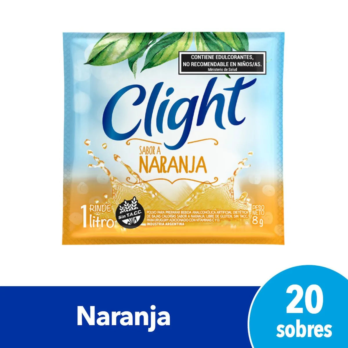 Jugo Clight sabor Naranja Sin TACC, 7 g / 0,24 oz (Caja de 20 sobres)