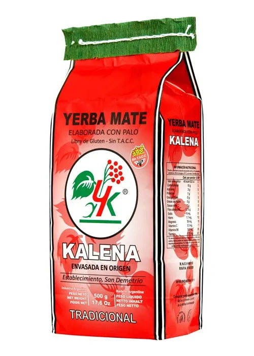 Yerba mate Kalena Orgánica Con Palo Sin TACC, 500 g / 17,63 oz (Paquete Rojo)